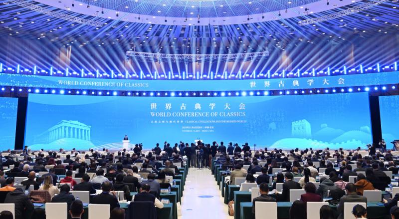 2024年11月7日,首届世界古典学大会开幕式在北京雁栖湖国际会展中心举行。新华社记者 李贺 摄