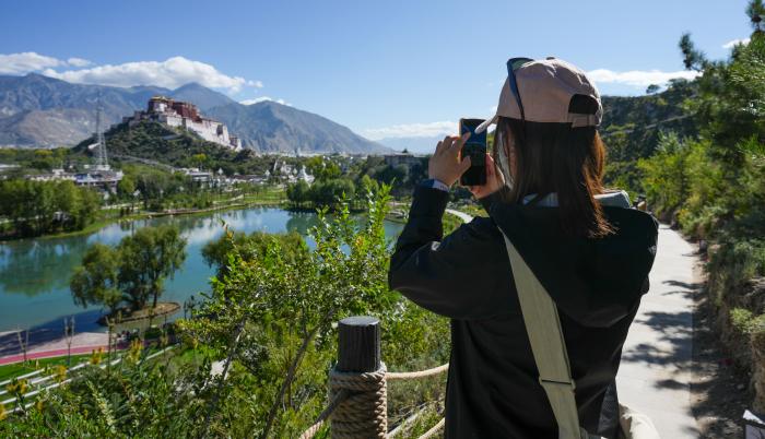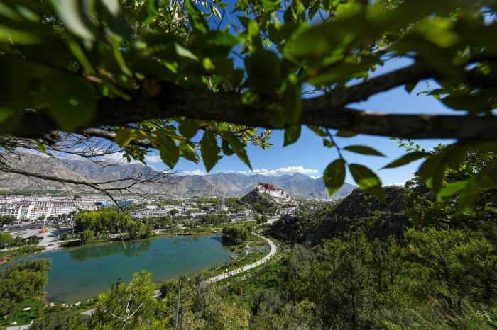 9月25日,从拉萨团结公园旁的药王山步行道远眺布达拉宫。