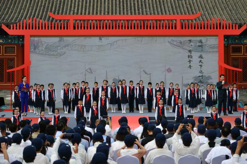 活动中,来自中国人民大学国学院的谷曙光教授深入浅出讲述了传统文化的时代价值,呼吁通过文明实践让千年文脉走进百姓生活、滋养城市文明。青年歌手、主持人、演播艺术家与通州少年儿童共同表演文艺节目,以嘹亮歌声传递对祖国的深情赞美,用声声诵读展现大运河的千年神韵。当《我爱你中国》响起,巨幅五星红旗在会场传递,观众挥舞国旗齐声合唱,现场洋溢着浓厚爱国热情。