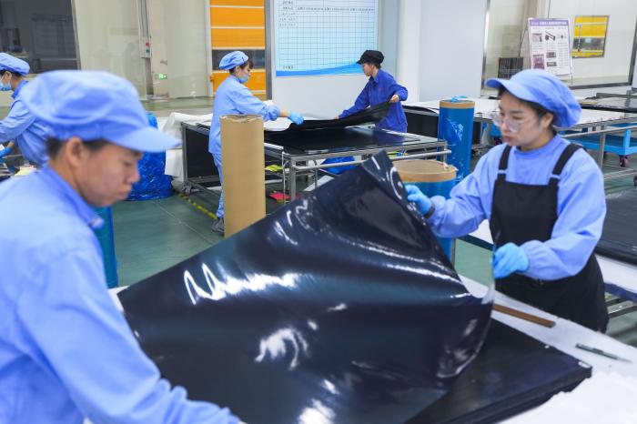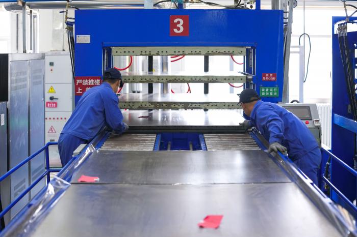 鲍雨彤说:“以前大家可能只知道碳纤维,但不清楚具体是谁做的。现在职业被‘正名’,我们工作的价值感更强了。”工作人员在吉林化纤集团国兴复材有限公司车间内加工碳纤维板材(9月17日摄)。新华社记者 许畅 摄