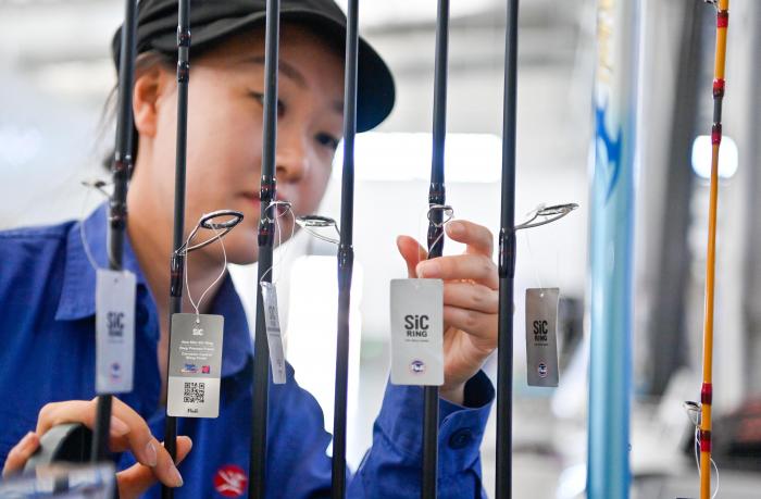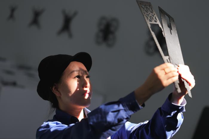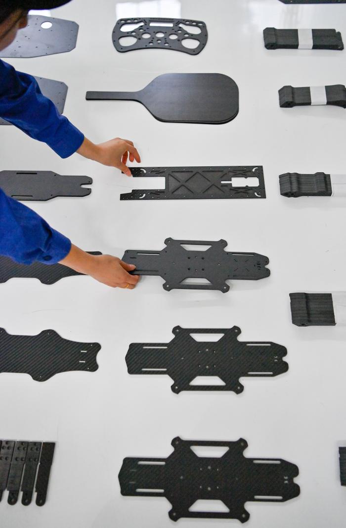 企业职工的一双双“巧手”曾织出衣服布料,现在用“黑色黄金”碳纤维“织就”各种产品,应用领域大到航空航天、新能源产业,小到钓鱼竿、羽毛球拍、自行车等日常生活用品……鲍雨彤在检查加工完成的碳纤维复材制件(9月17日摄)。新华社记者 许畅 摄
