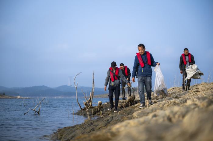 报告全文1.6万余字,系统总结了新时代以来长江治理的历史性成就、科学方略和世界意义。2024年10月28日,清漂队员在南水北调中线工程的水源地丹江口库区小岛上清理垃圾。新华社记者 伍志尊 摄