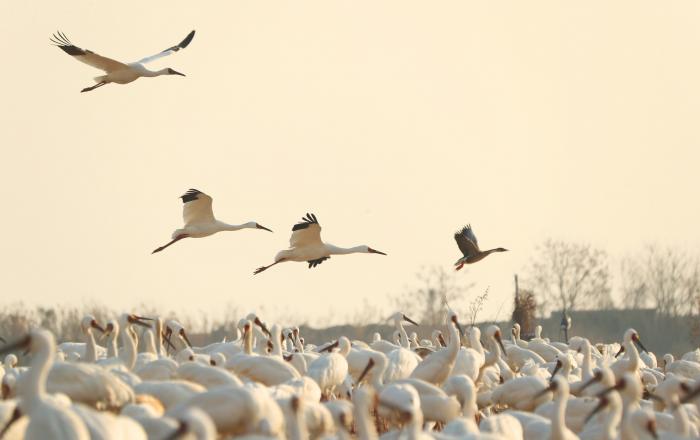 这是2025年1月12日在江西省上饶市余干县白鹤洲拍摄的候鸟。新华社发(曹正平 摄)