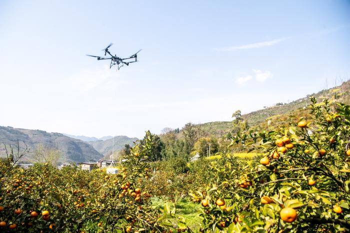 2025年3月20日,在位于三峡库区腹地的重庆市巫山县福田镇,无人机转运刚采摘的柑橘。新华社记者 唐奕 摄