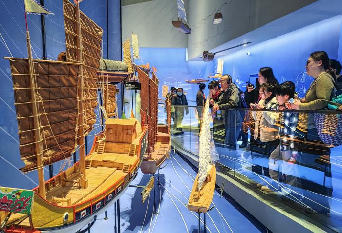 2025年2月1日,游客在位于江苏省扬州市的中国大运河博物馆参观。新华社发(王健民 摄)