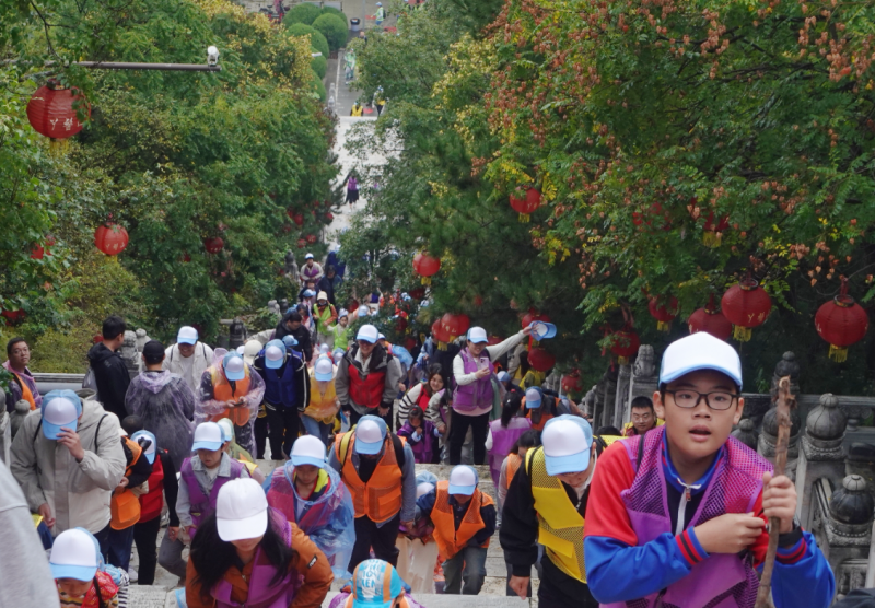 随后,10余支队伍依次出发,按照4.5公里的山地环线,沿365级祈福台阶拾级而上,抵达海拔315米的玉皇阁。尔后,顺坡道而下,沿途呼吸着山间清新的空气,领略着丫髻山的秋日美景,切身感受着丫髻山的文化之美、生态之美,畅享着徒步登山、绿色生活带来的快乐。