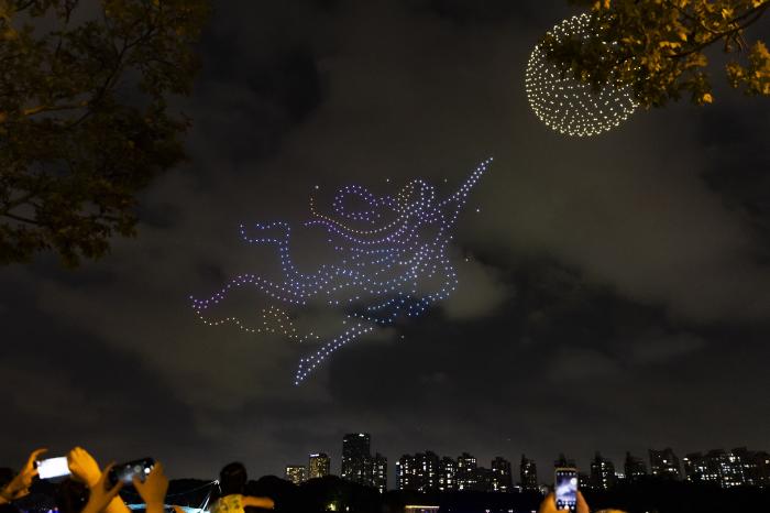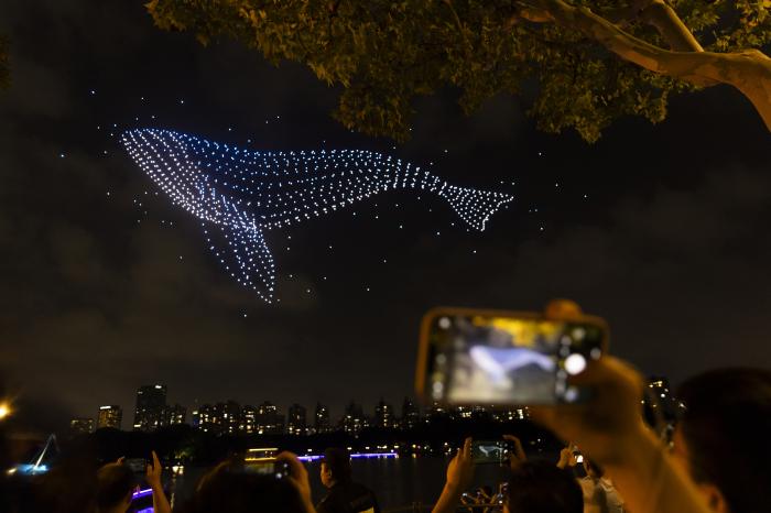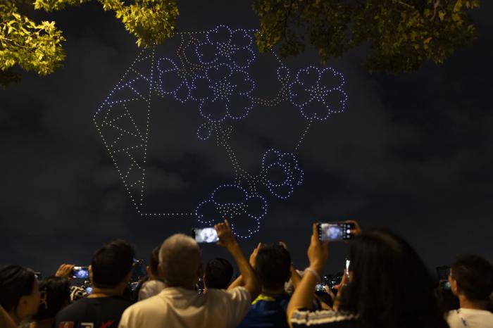 9月27日晚,“世纪璀璨——无人机灯光秀”表演在上海世纪公园举行。