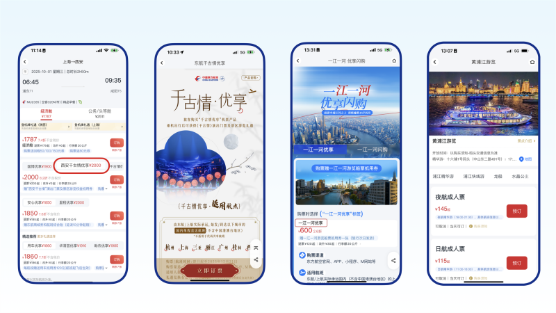 假期临近,东航APP“金秋飞享月”主题活动同步发布,上线多款“机票+”产品、东航文创、景区门票等限时福利。
