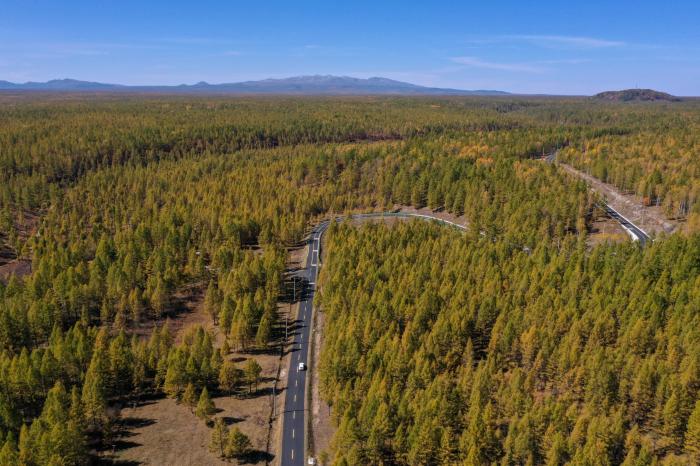 同样在28日,G331沿边开放旅游大通道吉林段也全线通车。G331吉林段全长1240公里,串联边境地区10个县市45个乡镇216个边境村和45个3A级及以上景区,是国家“十四五”规划重大工程。这是9月27日在吉林省安图县二道白河镇拍摄的长白山脚下G331风景(无人机照片)。