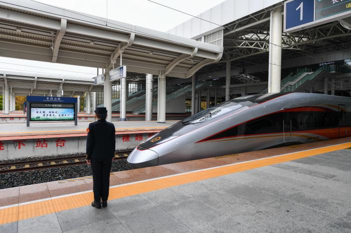 两大“交通动脉”开通后,高铁串联产业集群,国道激活边境资源,将有力推动东北地区与其他省份的协同联动,加速形成融合发展的格局。9月28日,从长白山站开往沈阳北站的G8166次列车驶入长白山站。