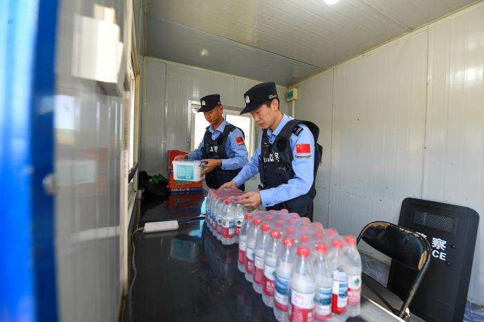 9月27日,吉林出入境边防检查总站广坪边境派出所民警在G331执勤点整理便民物资。
