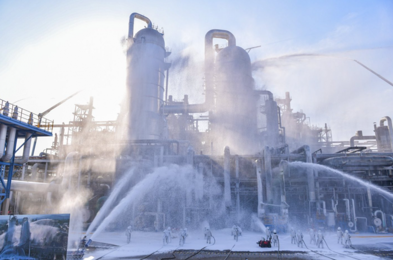 演练按照厂区灾情响应、企业初期处置、企地联动响应、消企联合处置、协同攻坚灭火五个阶段进行,各支参演力量在指挥部的统一指令下,出动相应力量按照分工进行演练。