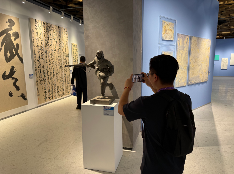 “潮起溯源·文脉的当代表达”板块落地鸟巢西区“雪花厅”,展出架上绘画与雕塑作品。本版块聚焦文化根脉的守护与焕新,以“在传统激流中重绘时代坐标”为核心理念,深入探索传统文化基因的创造性转化,系统呈现学院体系对传统造型艺术的深度梳理与先锋表达。此外,本版块还特别设立了“青年教师艺术作品邀请单元”,邀请来自中央美术学院、清华大学美术学院等15所高校的50位优秀青年教师参展,作品既体现对传统造型语言的学术深耕,也为当代艺术创作提供了前瞻性的价值引领。