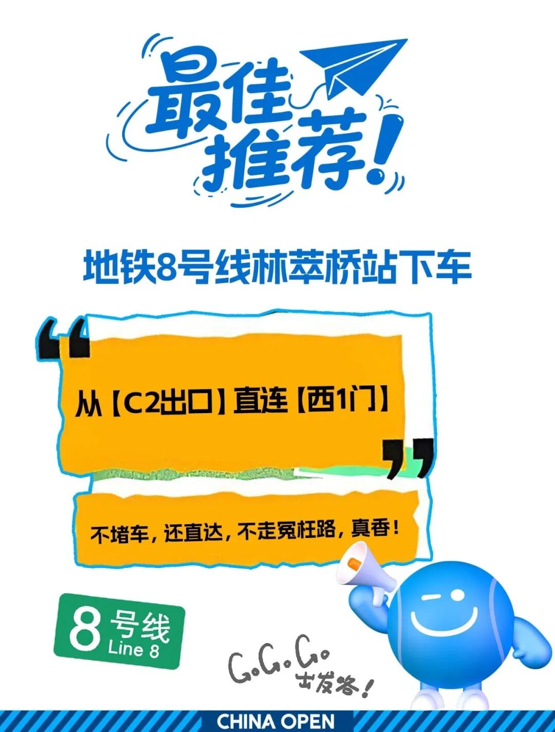 来看2025中国网球公开赛的球迷朋友,阿中为大家准备了这份超全面、超实用的中网观赛交通攻略,赶快收藏起来吧~