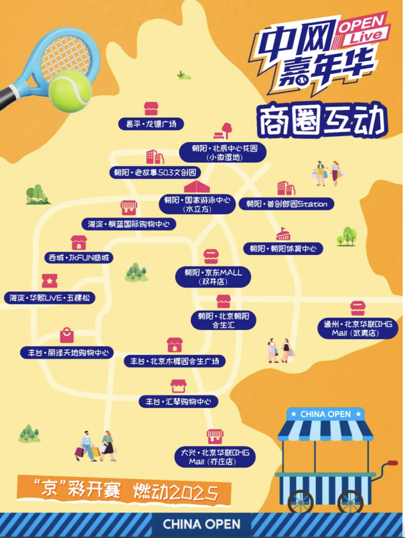2025中网“第二现场”计划将国际顶级网球赛事与城市文化、商业消费和旅游体验深度融合,为市民和游客打造“跨界融合、多圈拓展、因地制宜、全城联动、辐射全国”的观赛新体验,让网球热潮从赛场蔓延至全城,让高端体育赛事从专业场馆走向城市街巷,演变为人人可参与的城市节日。