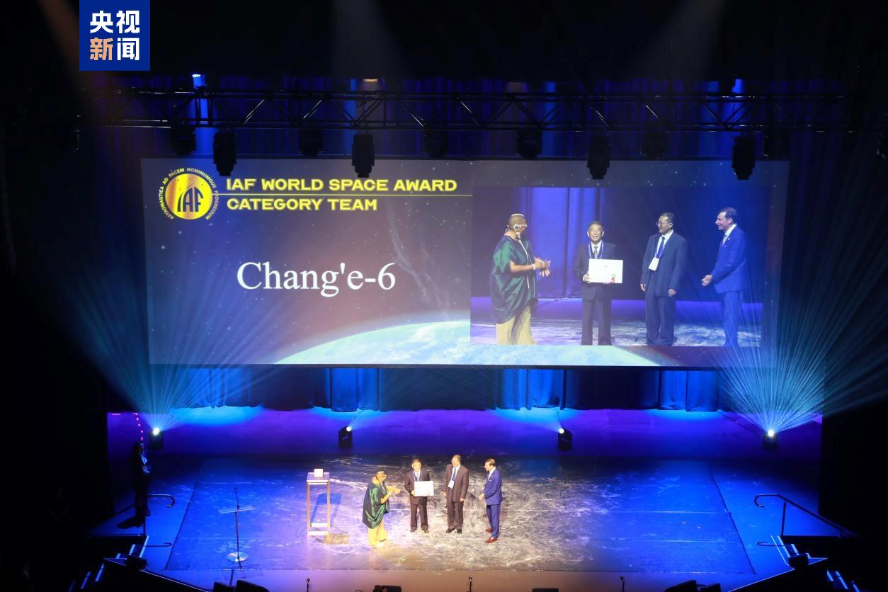 △中国嫦娥六号任务团队被授予国际宇航联合会(IAF)颁发的2025年度世界航天奖团体组奖项