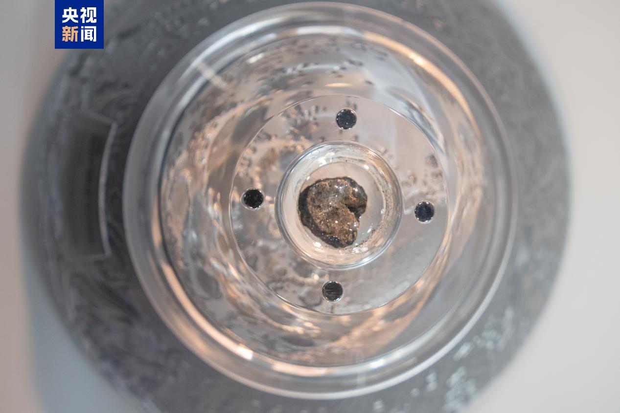 △嫦娥六号从月球背面采集并带回地球的月壤样本在中国航天展台展出
