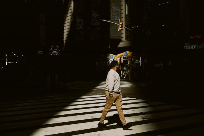10月1日,在美国纽约曼哈顿的时报广场附近,行人通过人行横道斑马线过马路。新华社记者 吴晓凌 摄
