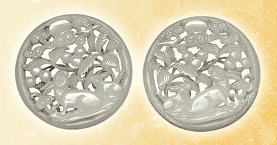 湖北省博物馆藏青白玉镂空东升图环饰——玉兔傍地,望向何方