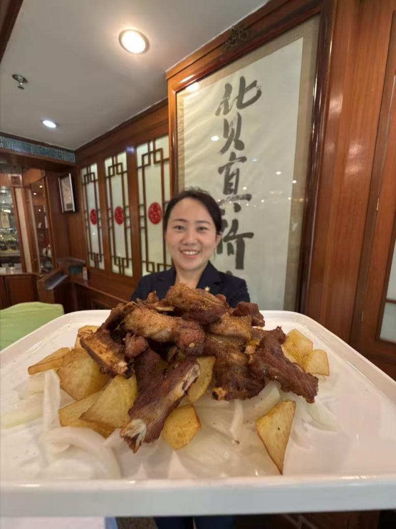 位于什刹海银锭桥畔的老字号烤肉季则上演"舌尖上的非遗蝶变",以内蒙古沙葱入馔,首创推出"塞外秋韵烤羊肋间"、贴骨羊排两道新菜肴,让食客在炭火氤氲中感受穿越百年的仪式感。烤肉季经理鲁建伟介绍:“以国家级非遗烤肉技艺为基础进行创新,提升了非遗项目味觉体验;另一方面,逐步将店里的传统技艺与羊肉不同部位融合,努力做几道好吃的羊肉菜。”据悉,为了提升中秋佳节的非遗体验,中秋当天,店内会将普通的文吃烤肉全部免费升级为烤肉季八味烤肉之一的“怀中抱月”。