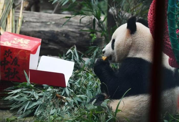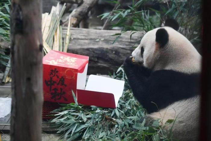今天是中秋佳节,北京动物园里不仅仅让大熊猫“吉年”“福将”和游客朋友们见上了面,同时也为动物朋友送上了特色动物月饼,大家一起来“咬月”。