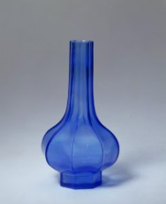 星汉灿烂单元的雍正款蓝色玻璃八棱瓶来自故宫博物院,为吹制成型的清代透明宝蓝色玻璃器,玻璃表面经过打磨,八个面均微微内凹,通体光素无纹,底部刻有“雍正年制”双竖行楷书款。