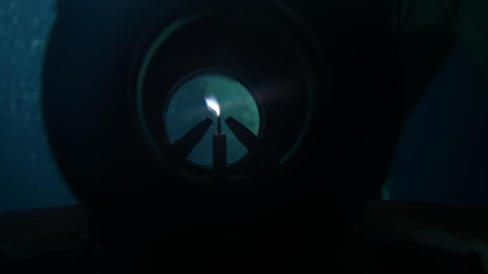 9月18日,在南海北部海域,我国自主研发的“海马”号深海遥控潜水器(ROV)搭载“可燃冰原位采集分解及引燃装置”下潜到1500多米深海底,科研人员远程操控采集可燃冰,并降压使其分解,产生的甲烷气体即为“源火”气源。采火装置在海底成功引燃“源火”(9月18日摄)。新华社发(广州海洋地质调查局供图)
