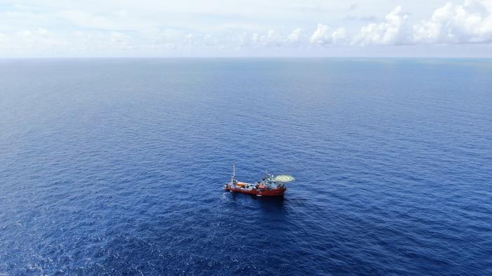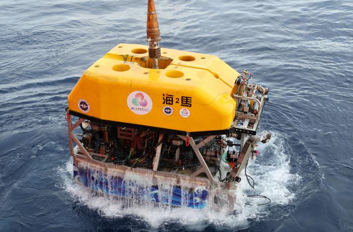 “海洋地质二号”科考船搭载“海马”号深海遥控潜水器在南海北部进行“源火”采集(9月18日摄)。新华社记者 卢汉欣 摄