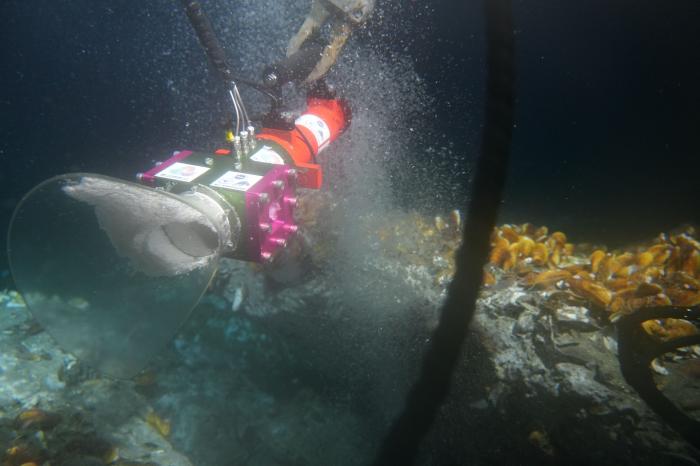 采火装置在海底冷泉喷口采集可燃冰(9月18日摄)。新华社发(广州海洋地质调查局供图)