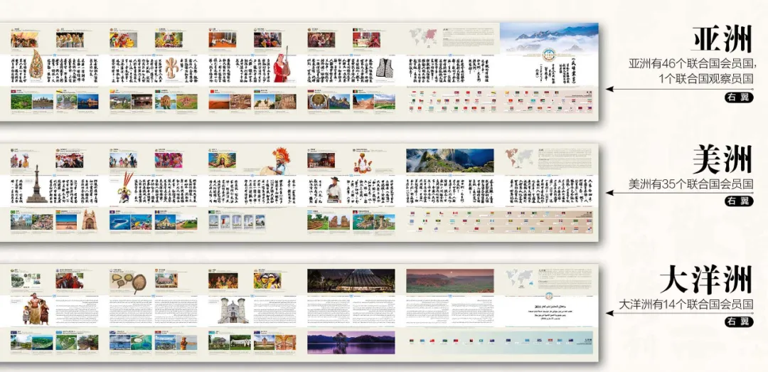 ● 形而上:以“天地人和”的东方哲学重构文明对话范式,将“人类命运共同体”从理念转化为可触可感的大美文明史诗;通过独特的设计和丰富的内容,将抽象的文明理念具象化为审美形象,让人们能够更加深刻地理解人类命运共同体的内涵。● 形而下:通过“数字印刷+传统工艺”的技术赋能与联合国“文明对话国际日”结合,为全球提供超越意识形态分歧、讲究“各美其美,美美与共”的交流平台与传播载体。借助现代技术和国际交往的文化创新,《文明长卷Ⅰ》为不同国家和地区的人们提供了一个平等、开放的文明交流对话空间和促进民心相通的传播载体。