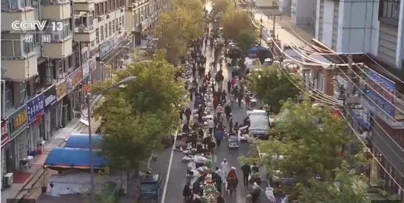 在鹤岗市绥滨县的一处早市,人头攒动,白菜、大葱、土豆等蔬菜吸引着居民前来选购。