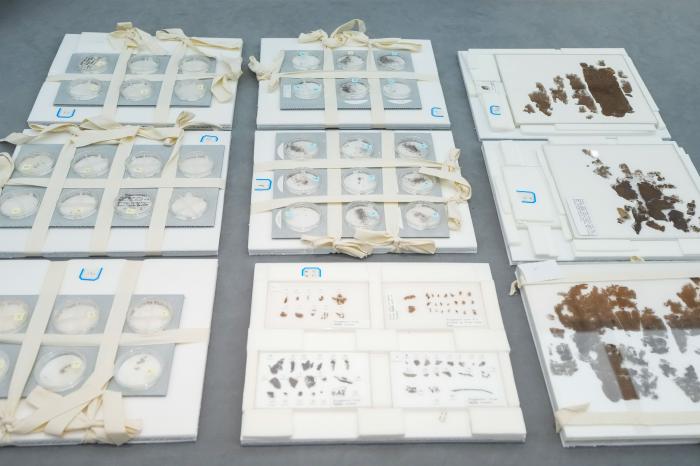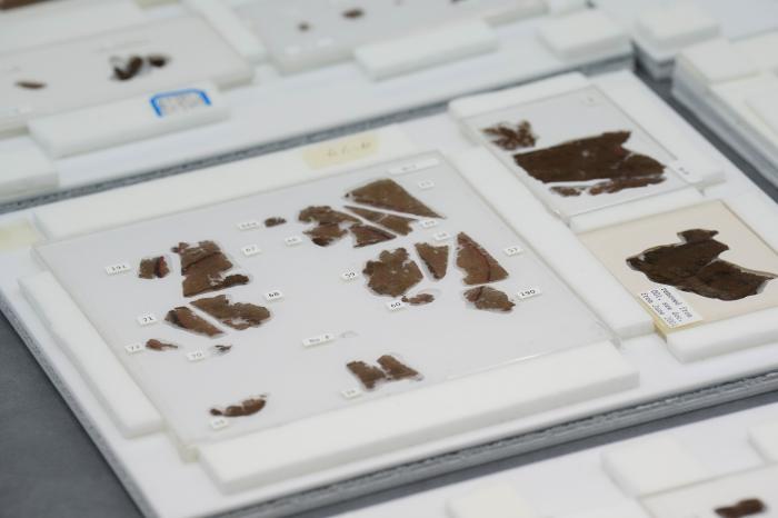 子弹库战国帛书是迄今为止发现的中国最早的、首个典籍意义上的帛书,于1942年在湖南长沙子弹库楚墓遭盗掘出土,1946年流散海外。通过中美文物返还合作,今年5月18日,美国史密森尼学会国立亚洲艺术博物馆返还的《五行令》《攻守占》落地北京,回到祖国。这是9月11日在湖南省博物馆拍摄的部分长沙子弹库战国帛书。新华社记者 薛宇舸 摄