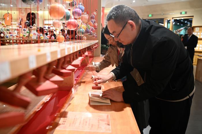 10月11日,游客在敦煌印局体验盖章。