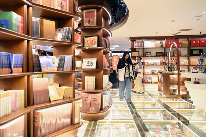 10月11日,游客在敦煌书局选购文创产品。