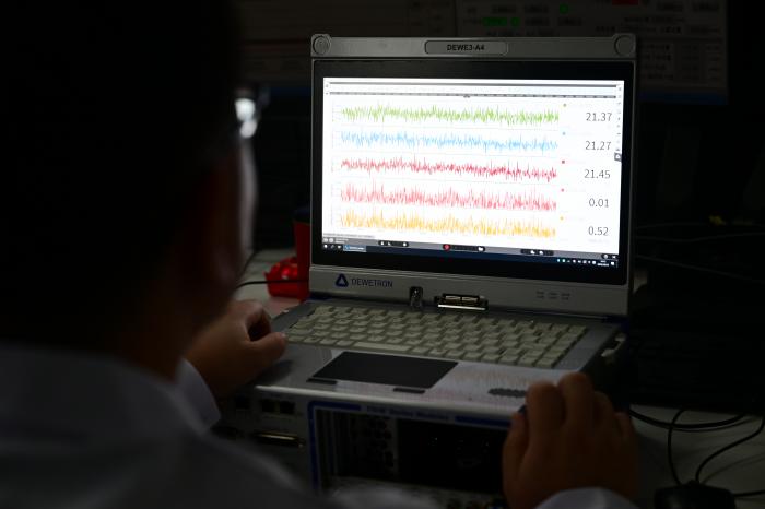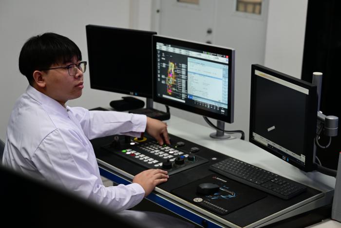 10月13日,科研人员在聚变堆主机关键系统综合研究设施“夸父”(CRAFT)偏滤器原型部件测试现场工作。