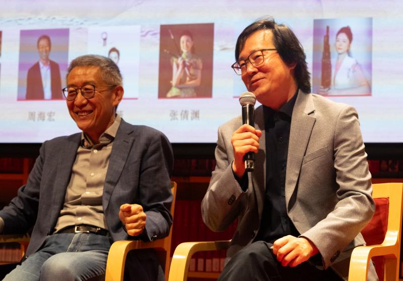10月12日,《行空——秦文琛协奏曲》艺术访谈暨蓝光唱片分享会在国家大剧院成功举办。作曲家、中央音乐学院教授、中央音乐学院副院长秦文琛携手音乐美学家周海宏展开深度对谈。琵琶演奏家兰维薇、大提琴演奏家莫漠、唢呐演奏家张倩渊、笙演奏家郑杨等出席活动。各位艺术家在现场演绎专辑中的经典片段,并围绕唱片背后的故事及中国当代音乐创作与对未来创作的展望进行交流。