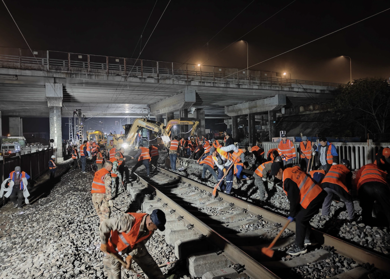 本次便线回拨施工涉及京广铁路双线1.21公里,拨线总长度达701米,最大拨距3.4米。北京工程项目管理部统筹协调、周密部署、优化方案、强化安全管控,丰台工务段、北京西电务段、北京供电段、北京通信段等单位通力配合,协同作业,上千名作业人员高效完成线路回拨及配套设备调试,攻克了时间紧、场地受限等诸多难题,保障了施工在240分钟规定时间内按时完成,未影响后续列车正常运行。