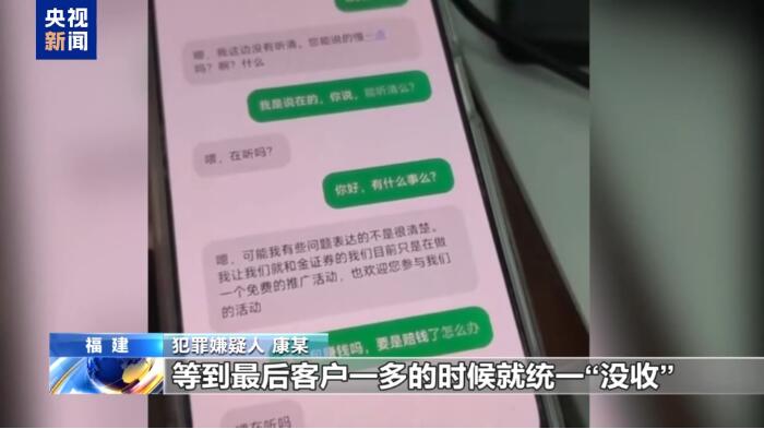 犯罪嫌疑人 康某:慢慢勾引他们上钩,前期你多少钱都可以提现,最多的一次是我干了一个亿的大盘。拿个袋子码起来放到房间,一百万一袋这样码起来。
