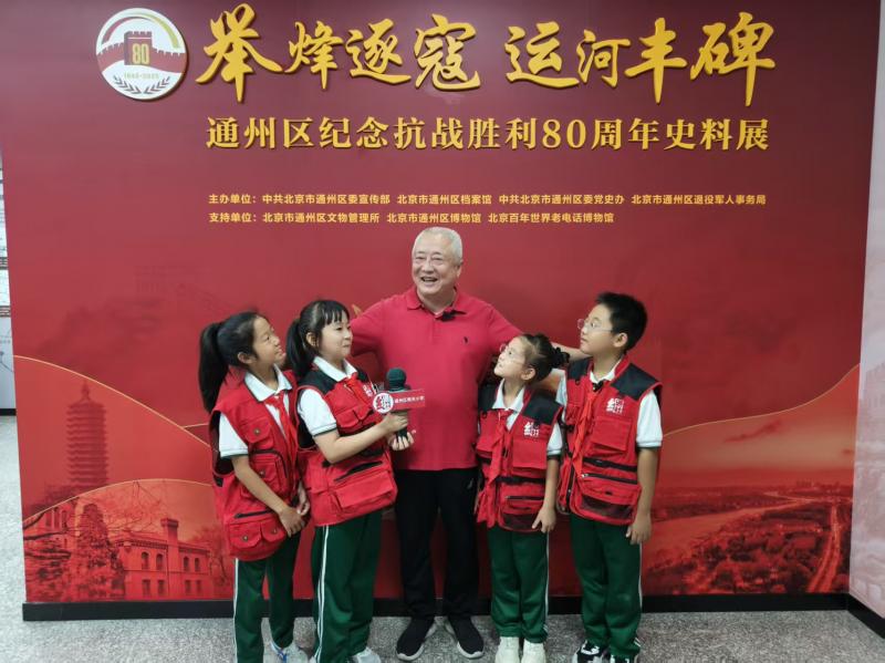 原通州文化馆研究员、剧作家刘康达爷爷随后也接受了小记者们的采访。刘爷爷向小记者们讲述了自己小时候听长辈聊起的抗战岁月——“日军占领时,通州百姓偷偷给抗日队伍送粮食,有人甚至冒着危险传递情报”,当小记者问“我们少先队员怎样传承英雄精神”,刘爷爷笑着说:“把你们今天听到的故事讲给同学、家人听,让更多人记得抗战英雄的故事,就是最好的传承。”刘康达爷爷也是一名剧作家,他非常肯定小记者们扎实的采访功底。最后,他勉励小记者们说:“希望你们今后读万卷书,行万里路,认识一万个人,说一句顶一万句的话。做一名好记者,成为大写的人。”