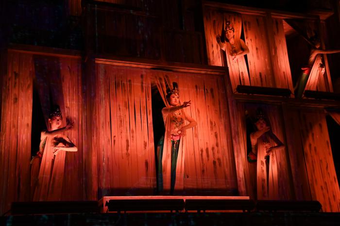 10月15日,演员在大型室内情景体验剧《又见敦煌》中表演。