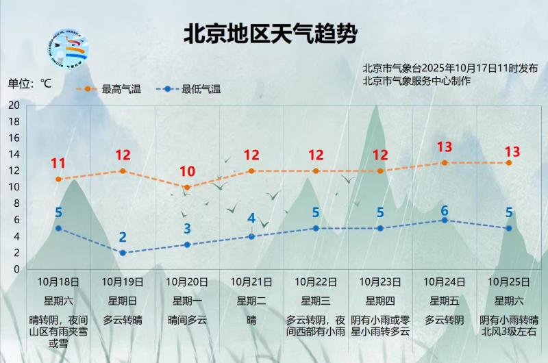 北京未来三天气温缓慢下降,后天山区有小雪飘落
