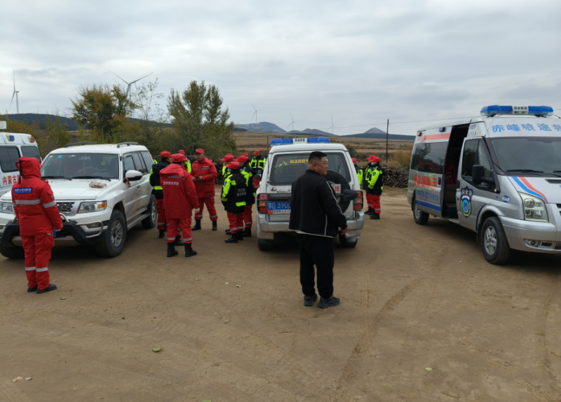 10月16日,大范围搜救全面展开。赤峰狼途应急救援中心队员与当地警方、村民联合组成的搜救队伍,穿梭于沟壑与密林间。无人机进行空中巡查,地面队员则借助专业装备逐一排查,队员们不敢有丝毫懈怠。然而直至夜幕降临,全天搜救仍无进展。当晚,来自周边的热心市民、商户和社会各界人士也都陆续加入到救援当中。