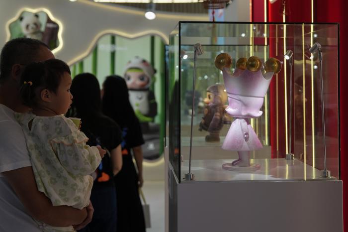 10月17日,观众在中外交流互鉴馆参观泡泡玛特展区。