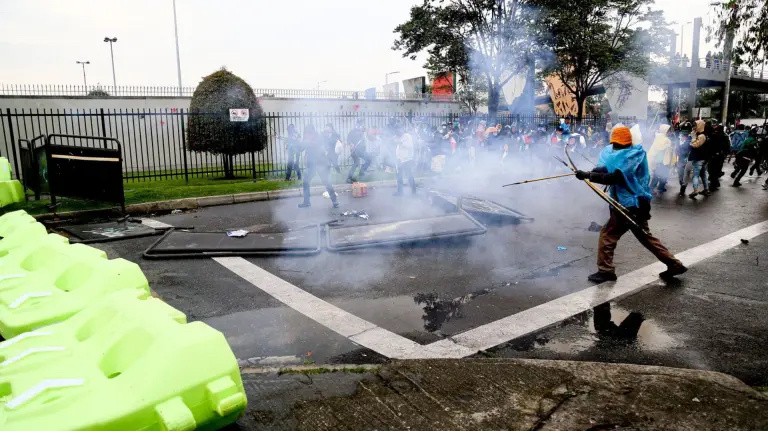 美国驻哥伦比亚大使馆外发生抗议 4名哥警察受伤