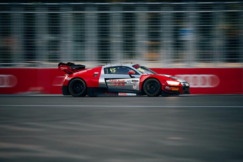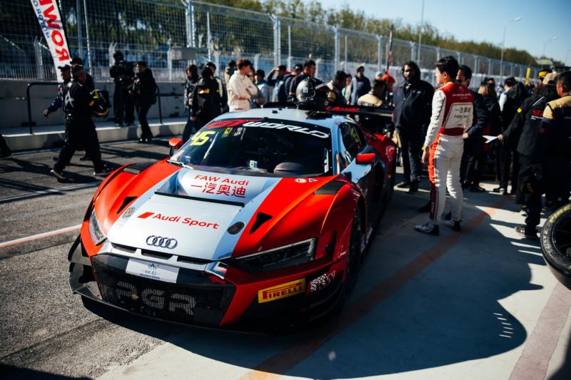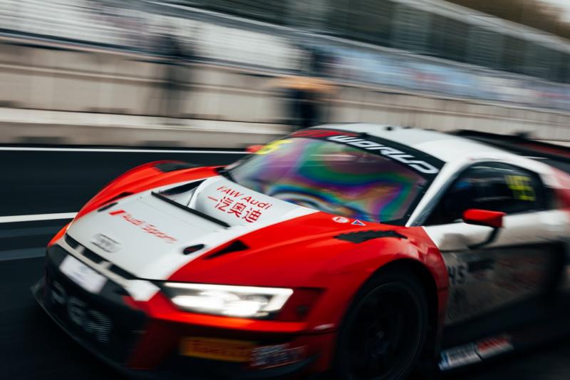 收官战举办地——北京亦庄通明湖街道赛道,全长4.9公里,最高设计时速达299公里/小时,完美融合城市景观与专业赛道特性,对车辆性能与车手技艺提出双重考验。一汽奥迪魅影车队派出#45赛车出战,其姊妹车队奥迪运动亚洲魅影车队亦携46号赛车同场竞技。除程丛夫、余快外,包金龙、唐伟枫等实力车手也共同出征,驾驶有“百冠王”之称奥迪 R8 LMS GT3 赛车。它以V10发动机为心脏,更以源自赛道的尖端科技为骨骼——高强度轻量化车身、高效空气动力学与精准底盘调校全面赋能,铸就其无可挑剔的赛道机器本质