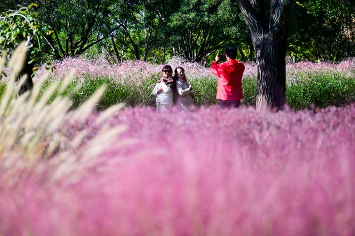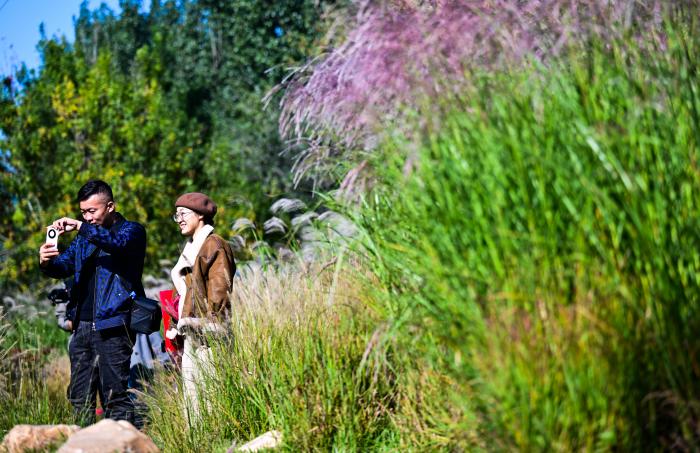 近日,位于天津市滨海新区的泰达植物资源库芊卉园的观赏草迎来最佳观赏期,狼尾草、粉黛乱子草等色彩斑斓,摇曳生姿,吸引不少游客游览拍照。