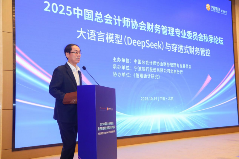 2025年10月19日,由中国总会计师协会财务管理专业委员会主办、宁波银行北京分行承办的“2025年秋季论坛”在北京成功举行。本次论坛以“大语言模型(DeepSeek)与穿透式财务管控”为主题,汇聚了来自国央企、知名院校、金融机构及科技公司的众多权威专家与业界领袖,共同探索人工智能时代下财务管理的变革与未来。