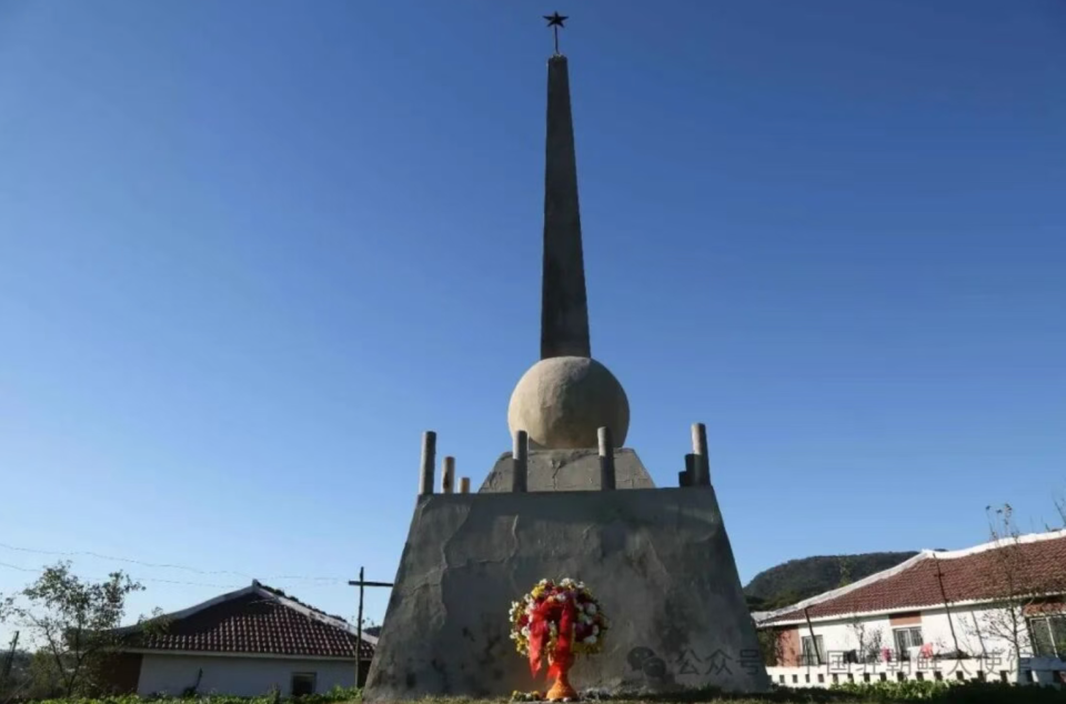 纪念塔坐落在江东邑内一座小山上的民居旁,系江东郡人民于1953年10月25日自发修建,并一直维护至今。