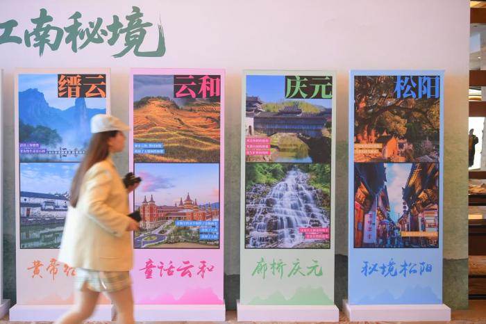 现场各类展板展出丽水市各地区旅游资源。