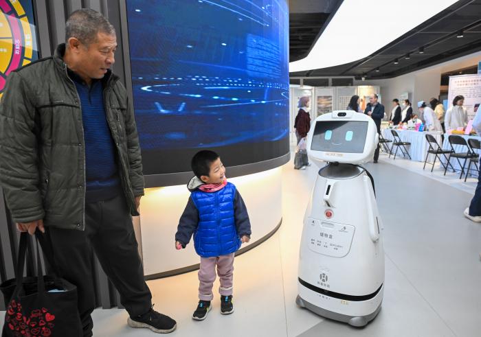 10月25日,市民在“敬老月”主题活动的养老消费季展厅参观一款养老服务机器人。